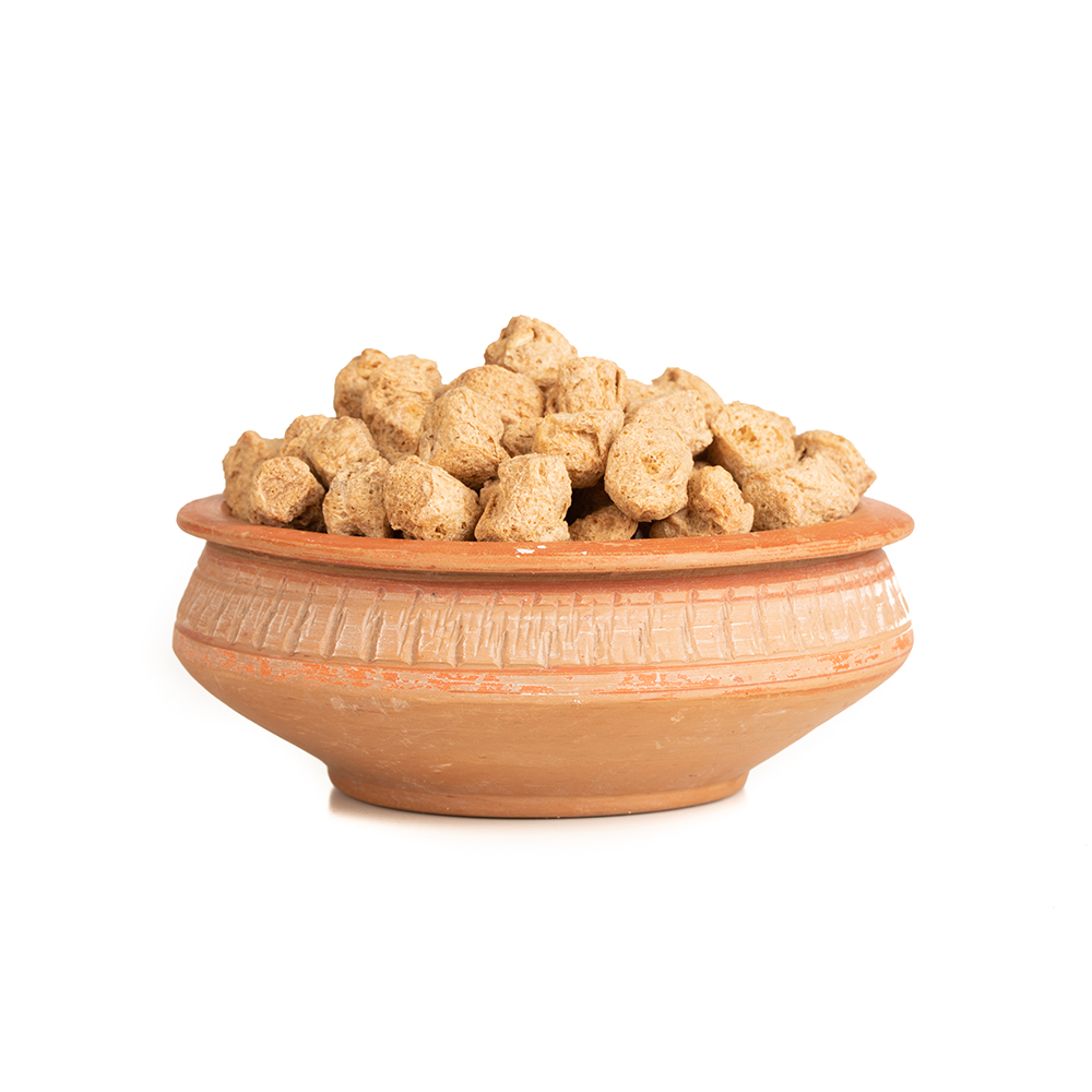 Soya chunks, also called textured vegetable protein (TVP), are meaty morsels made from defatted soy flour. A byproduct of soybean oil production, these chunks are packed with protein, making them a popular choice for vegetarians and vegans. They have a neutral flavor and spongy texture, readily absorbing the seasonings they're cooked with. Soya chunks are incredibly versatile, used in everything from curries and stir-fries to burgers and crumbles, adding a satisfying meat-like texture to plant-based meals.