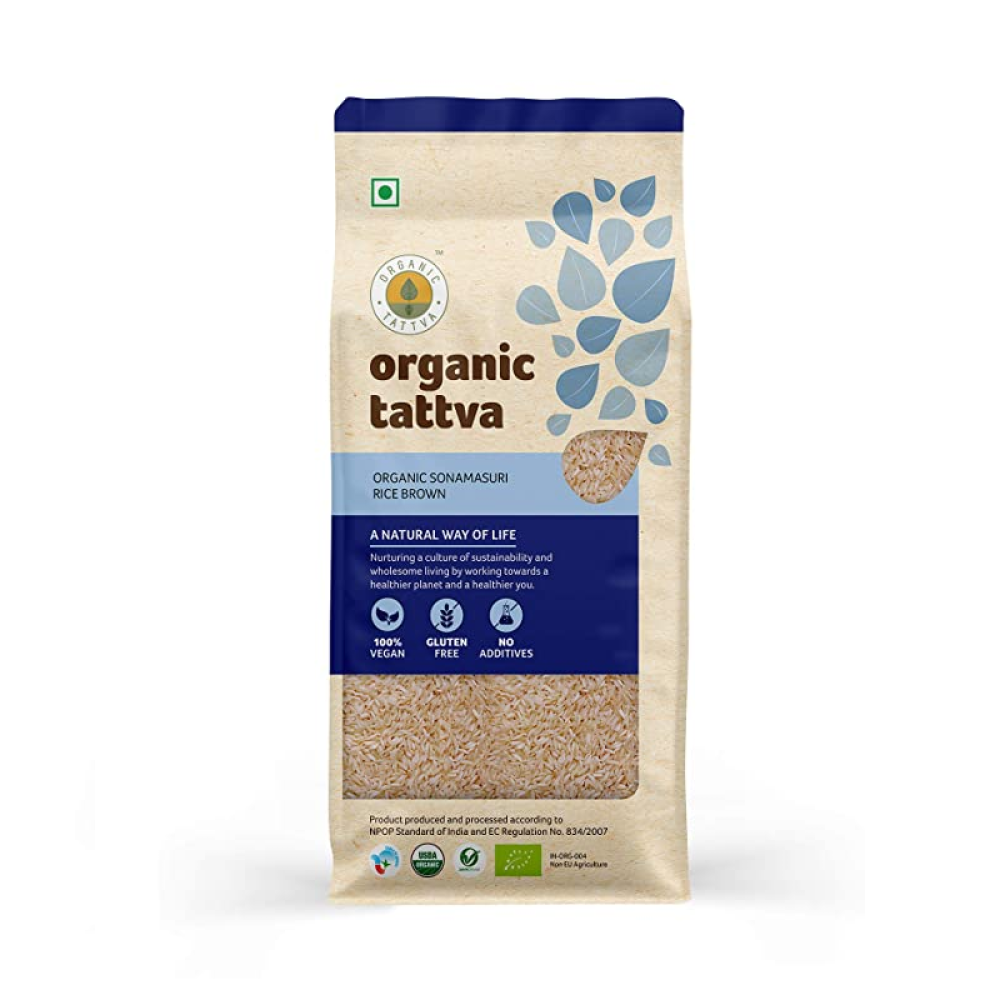 Organic Tattva-Organic Sonamasuri Rice Brown 1kg. Sonamasuri rice is from south India, this brown rice is rich in nutrients as it is unpolished. It is high in starch and low in fat, packed with nutrients like iron, calcium, potassium, manganese, and selenium.