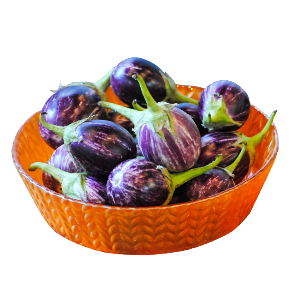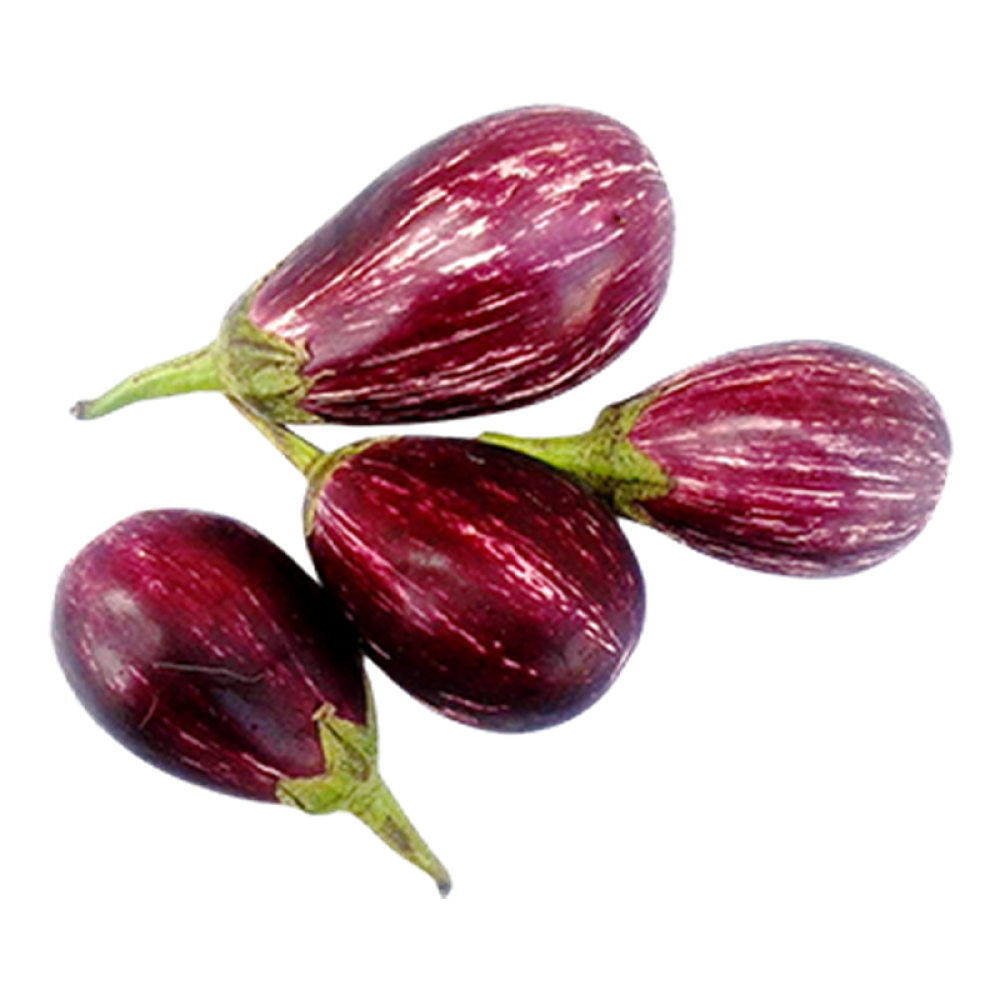Egg-shaped purple and white striped shiny skinned brinjal vari is the most sought-after vegetable in Indian continental cuisines. Its creamy flesh and edible seeds ad taste to any dish it is being added. It is rich in Vitamin C, K, phytonutrients, and antioxidants.